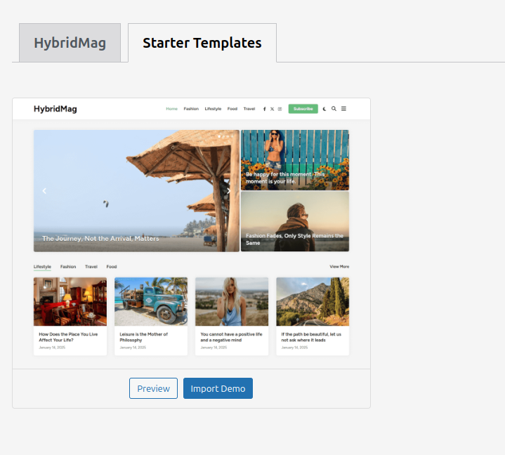 - Go to Dashboard→ Appearance →HybridMag Theme.